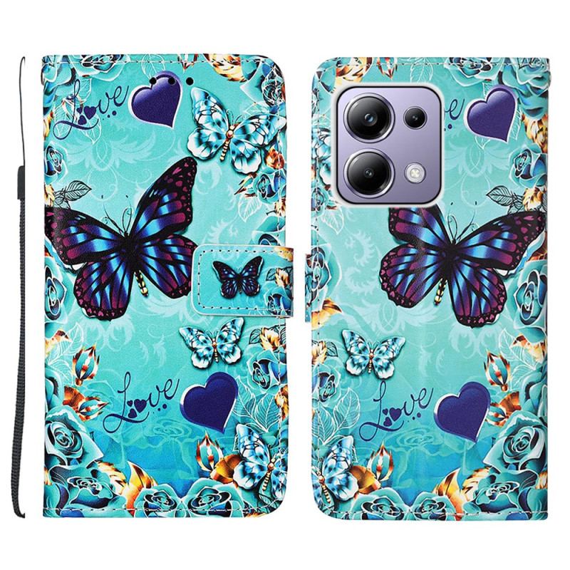 Läderfodral Xiaomi Redmi Note 13 Pro 4g Telefonfodral Fjärilar Och Hjärtan Med Rem