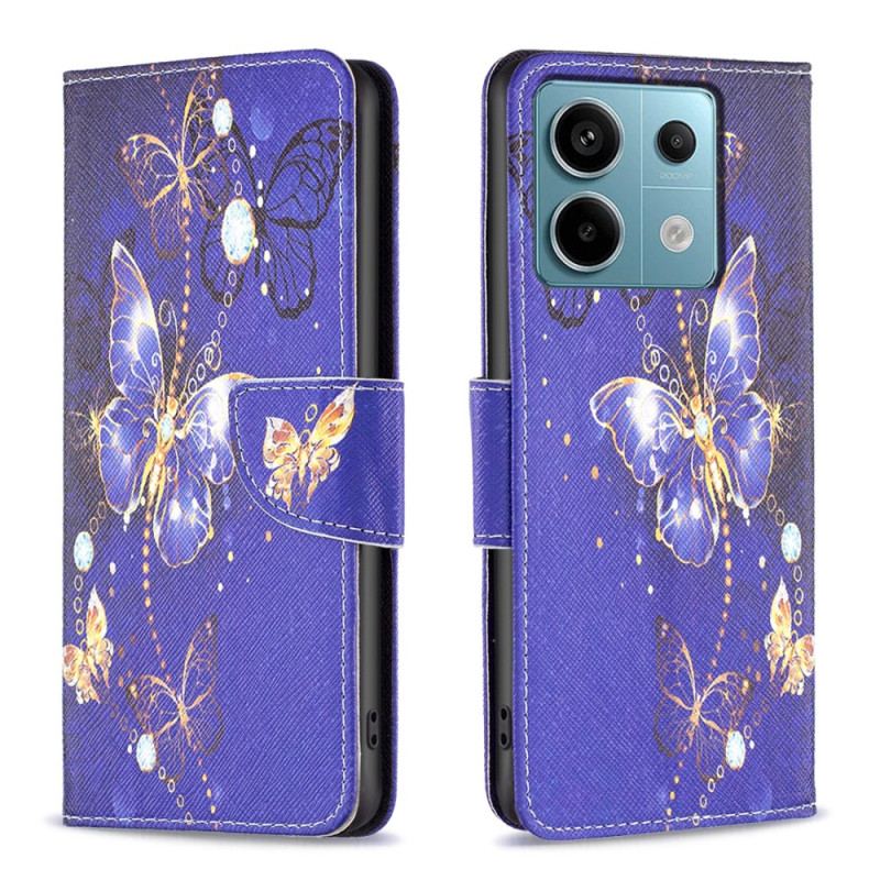 Läderfodral Xiaomi Redmi Note 13 Pro 5g Telefonfodral Lila Fjärilar