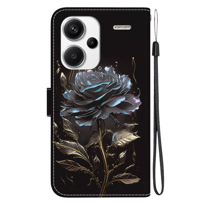 Läderfodral Xiaomi Redmi Note 13 Pro Plus 5g Telefonfodral Black Rose Med Rem