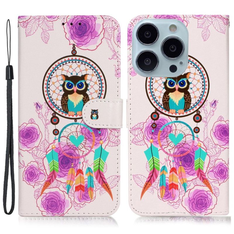 Läderskal Fodral iPhone 16 Pro Max Uggladrömfångare Med Rem