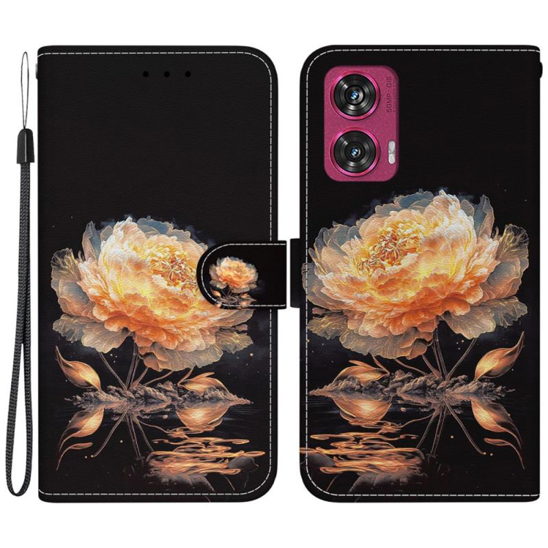 Läderskal Fodral Motorola Edge 50 Fusion Guldpion Med Rem