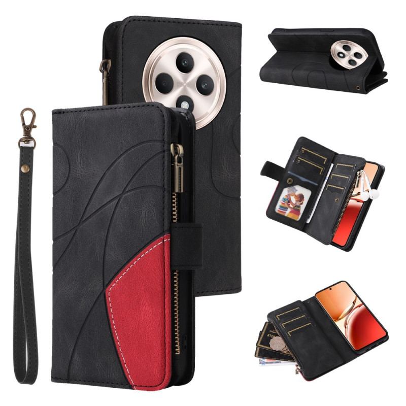 Läderskal Fodral Oppo Reno 12f 5g Tvåfärgad Wavy Line-plånbok