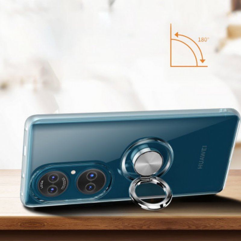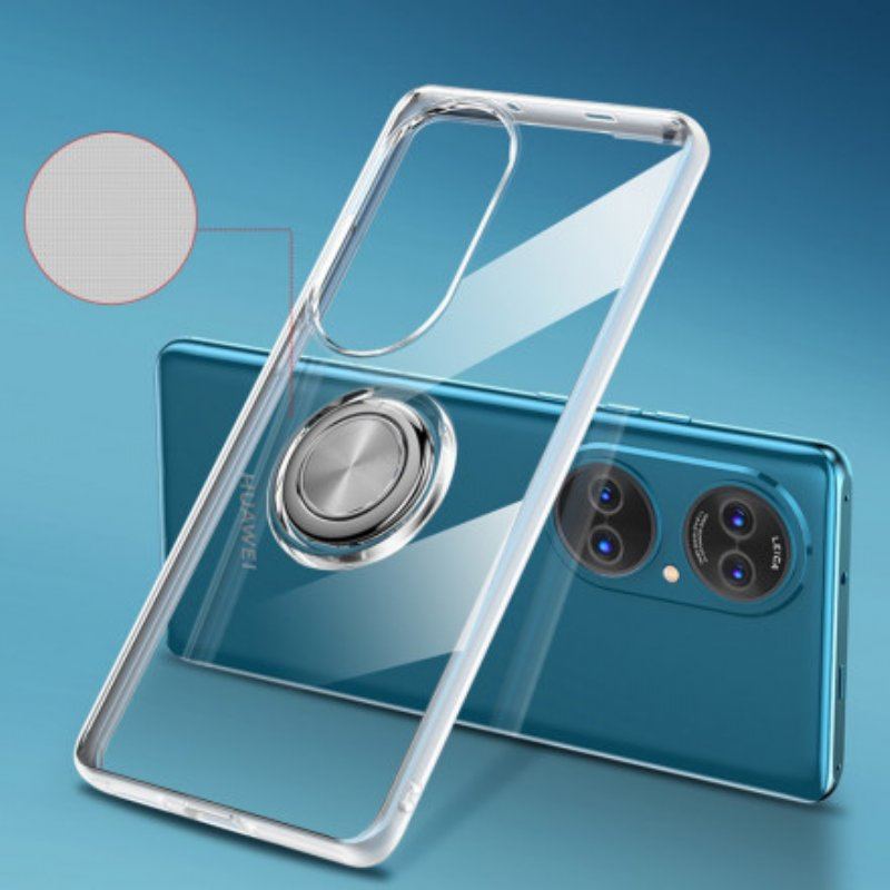 Enkelt Transparent Skal, Med Metallstödring, Skyddar Huawei P50 Samtidigt Som Du Bär Den På Fingret.