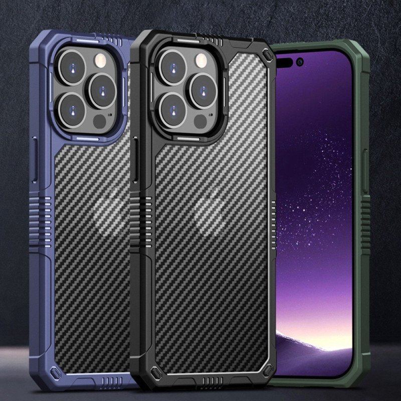 Det Genomskinliga Fodralet Med Kolfiberstruktur Ger Optimalt Skydd För Din Iphone 14 Dagligen.