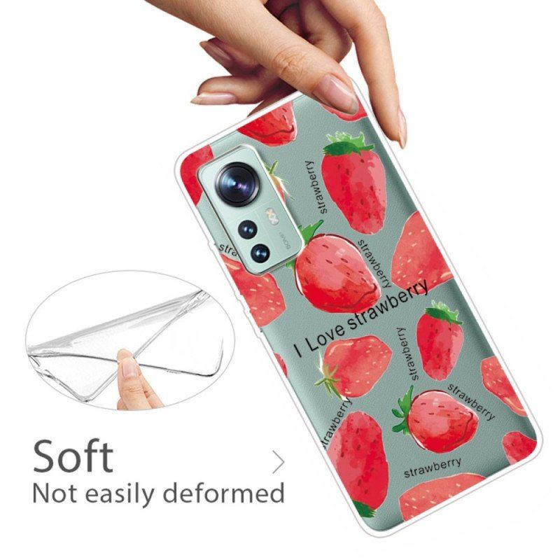 Skydda Din Xiaomi 12 / 12X Med Detta Genomskinliga Fodral Dekorerat Med Gourmetjordgubbar.