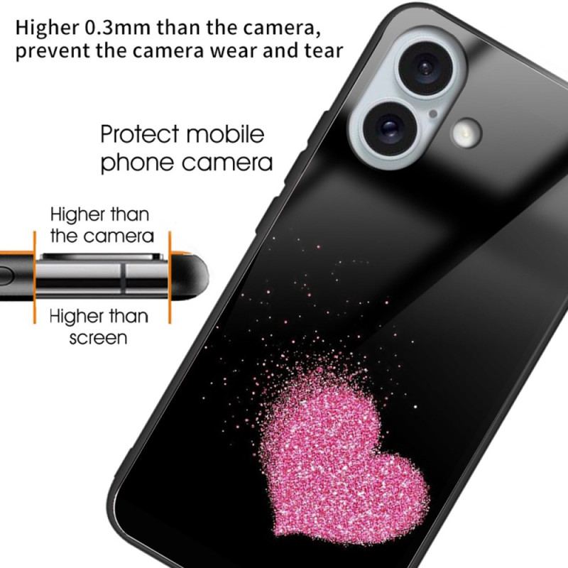 Skal För iPhone 16 Plus Rosa Hjärta Härdat Glas