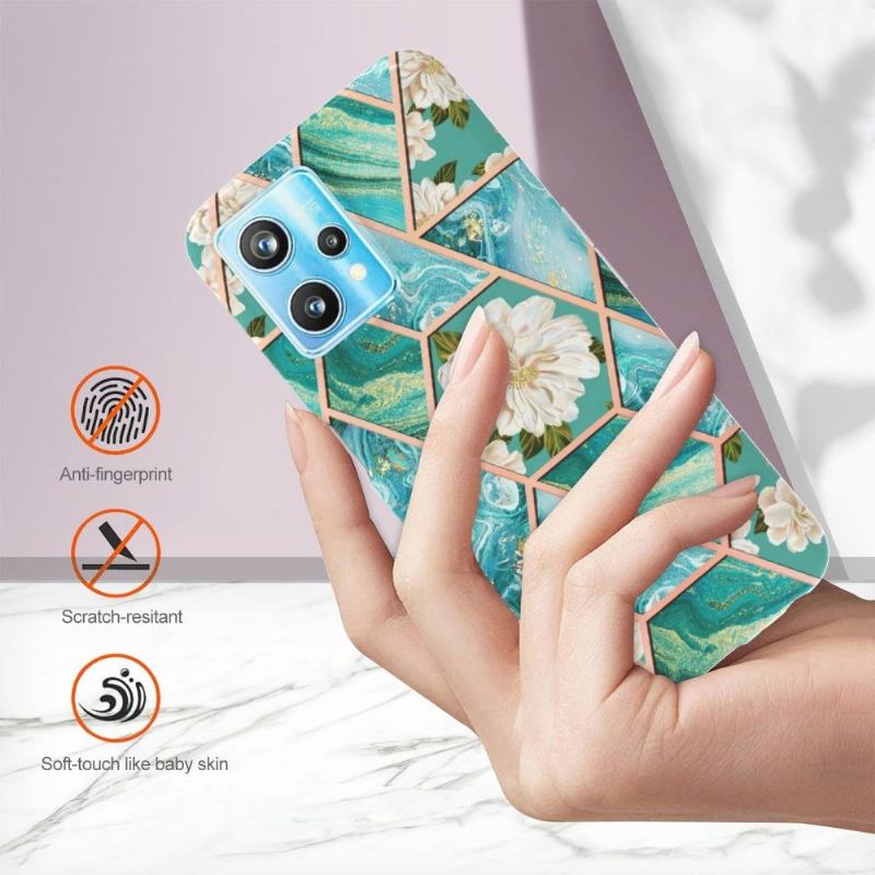 Skal För Realme 9 Pro Plus Marmor Och Vita Blommor