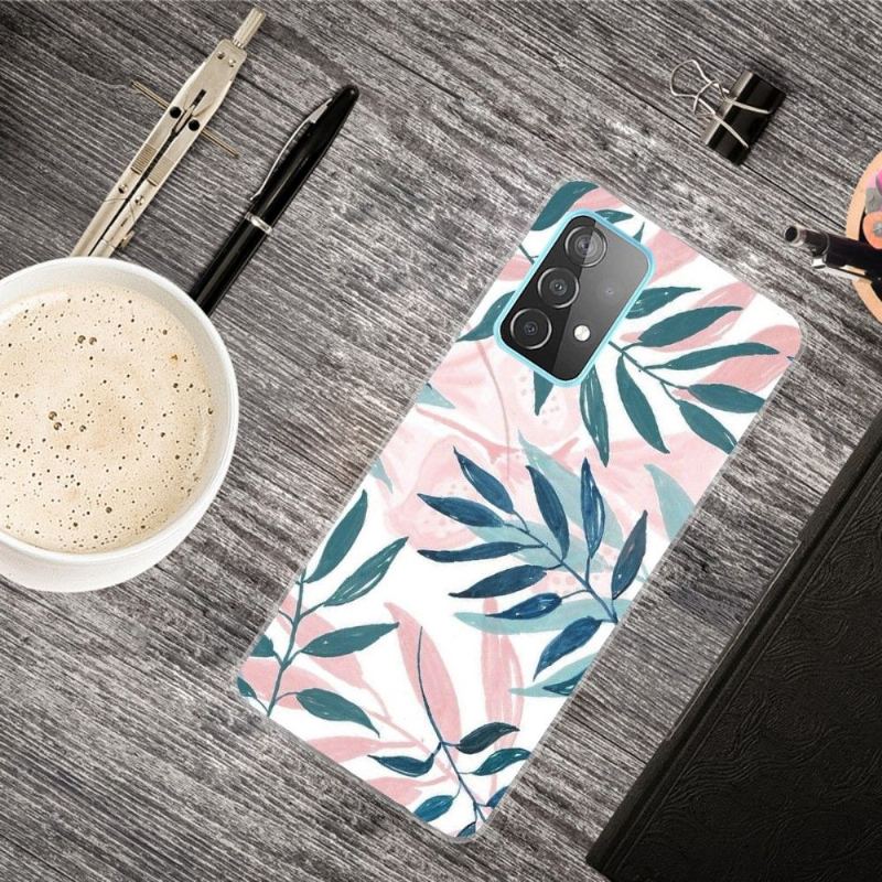Skal För Samsung Galaxy A32 5G Gröna Och Rosa Löv