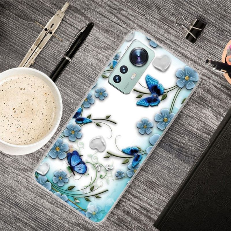 Skal För Xiaomi 12 Hemming Blå Fjärilar Och Blommor