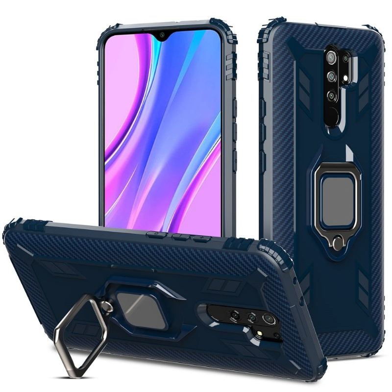 Minimera inte konsekvenserna av din Xiaomi Redmi 9. beväpna den med detta skal i kolfiberlook med ringhållare.