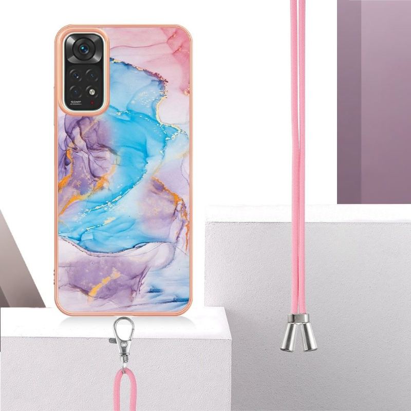Skal För Xiaomi Redmi Note 11 / Note 11S Hemming Med Snodd Blåfärgad Marmor