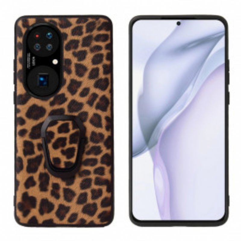 Din Huawei P50 Är I Perfekt Säkerhet Med Detta Leopardliknande Fodral Och Utrustad Med En Mycket Praktisk Stödring.