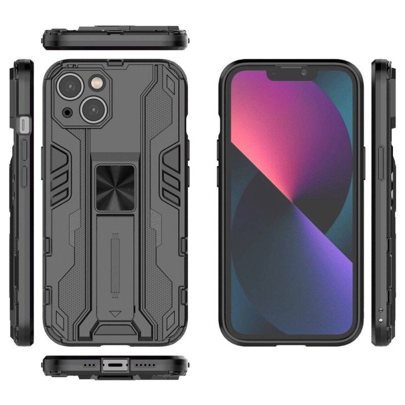 Din Iphone 14 Är Väl Säkrad Med Detta Fodral, Som Har Ett Avtagbart Stativ Och Kan Placeras Vertikalt Och Horisontellt.