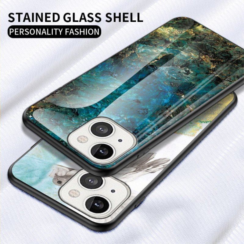 Härdat Glasfodral I Marble Säkrar Iphone 14 På Ett Personligt Och Smalt Sätt.