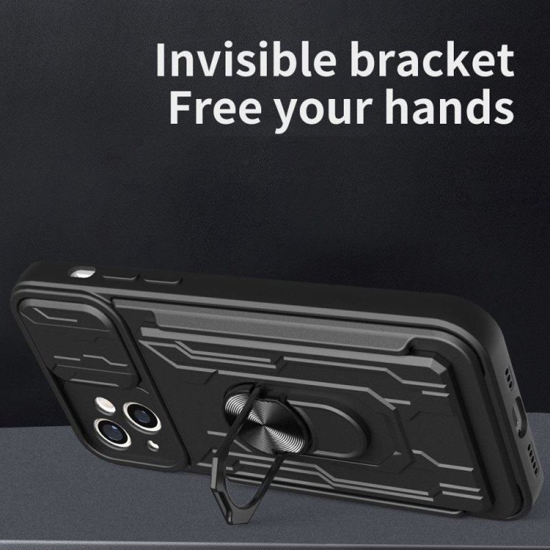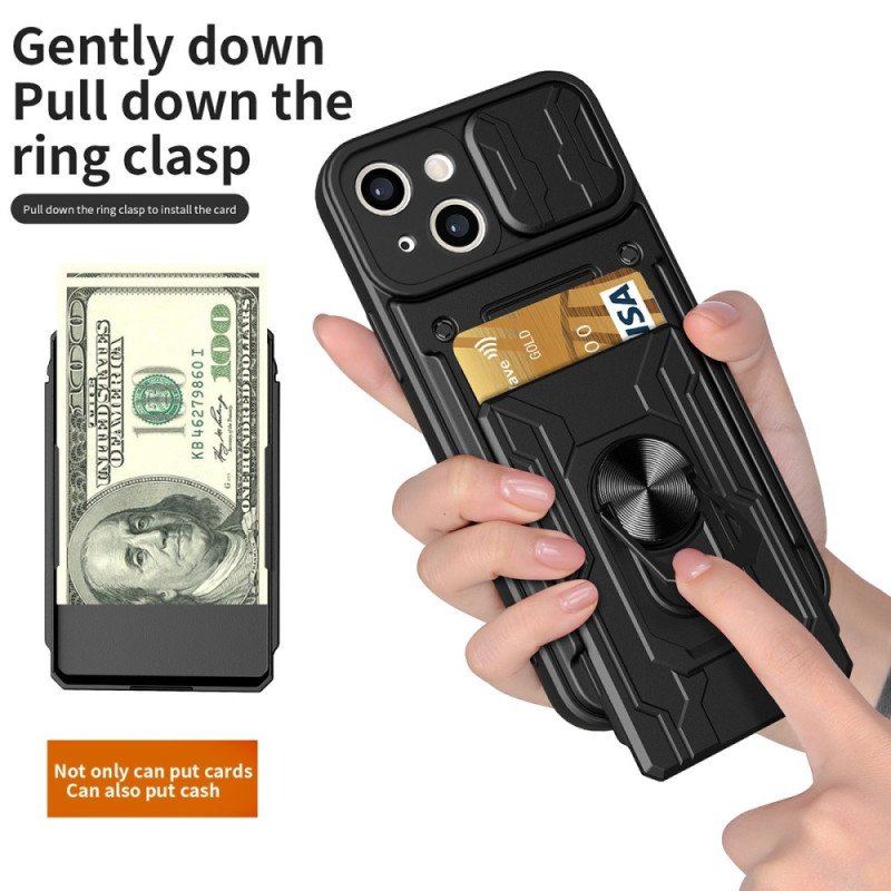 Din Iphone 14 Ser Vacker Ut Med Detta Fodral Med En Stödring Och Ett Linsskydd Med Dragkedja.