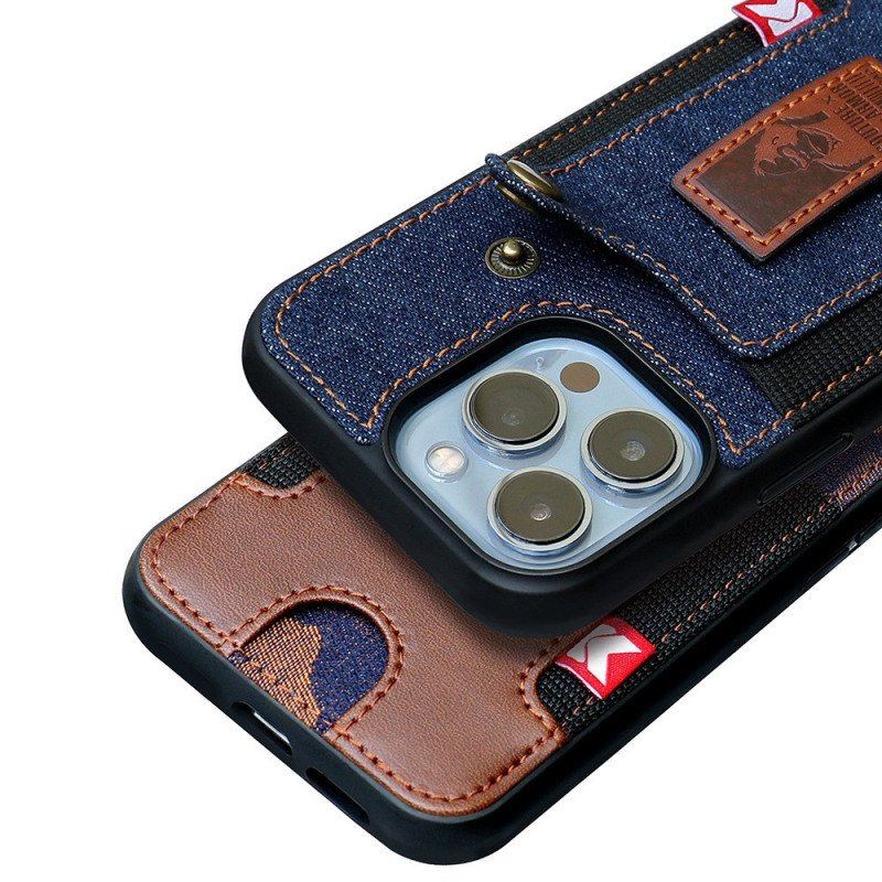 Välj Detta Jeansfodral För Din Iphone 14 Pro Som Är Utrustad Med En Korthållare Och En Liten Rem.