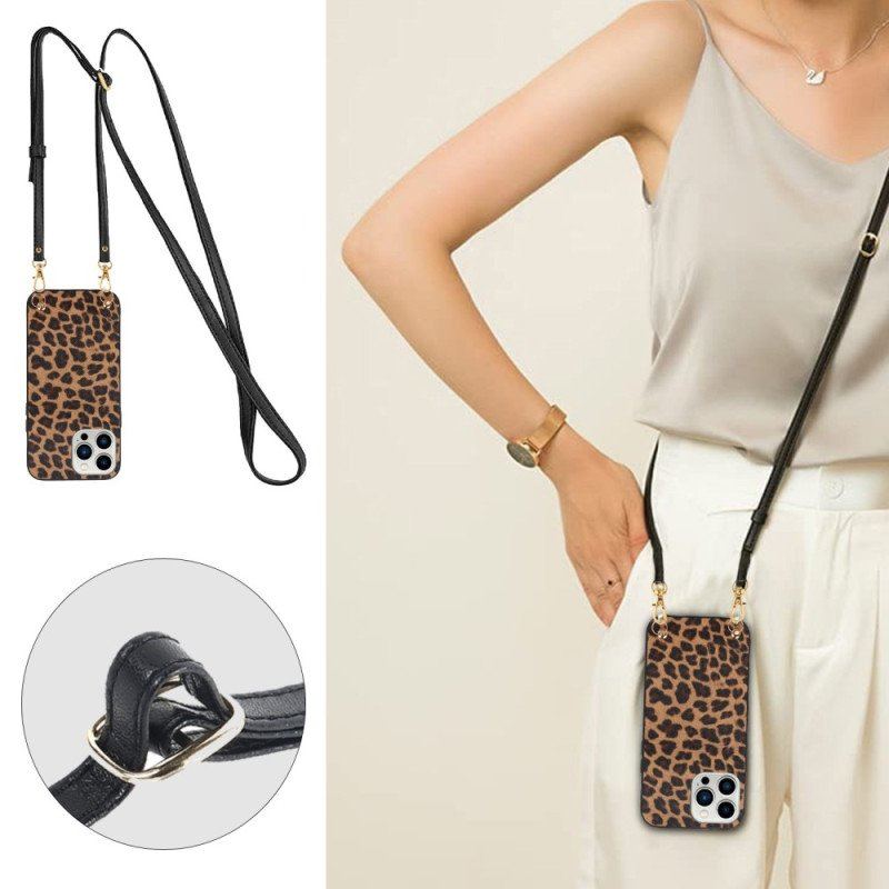 Skal iPhone 14 Pro Leopard Med Axelrem