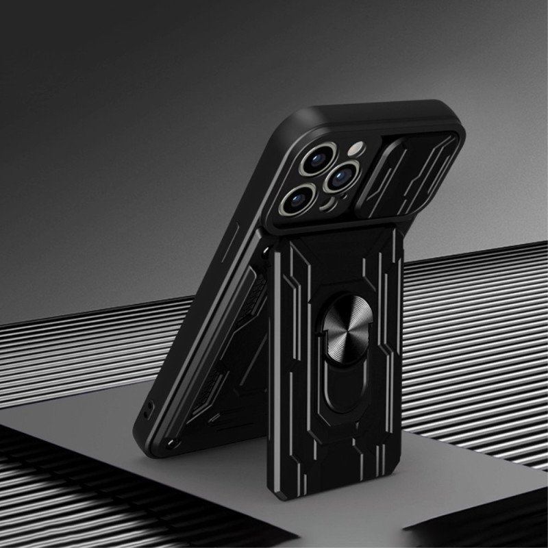 Din Iphone 14 Pro Ser Vacker Ut Med Detta Fodral Med En Stödring Och Ett Linsskydd Med Dragkedja.