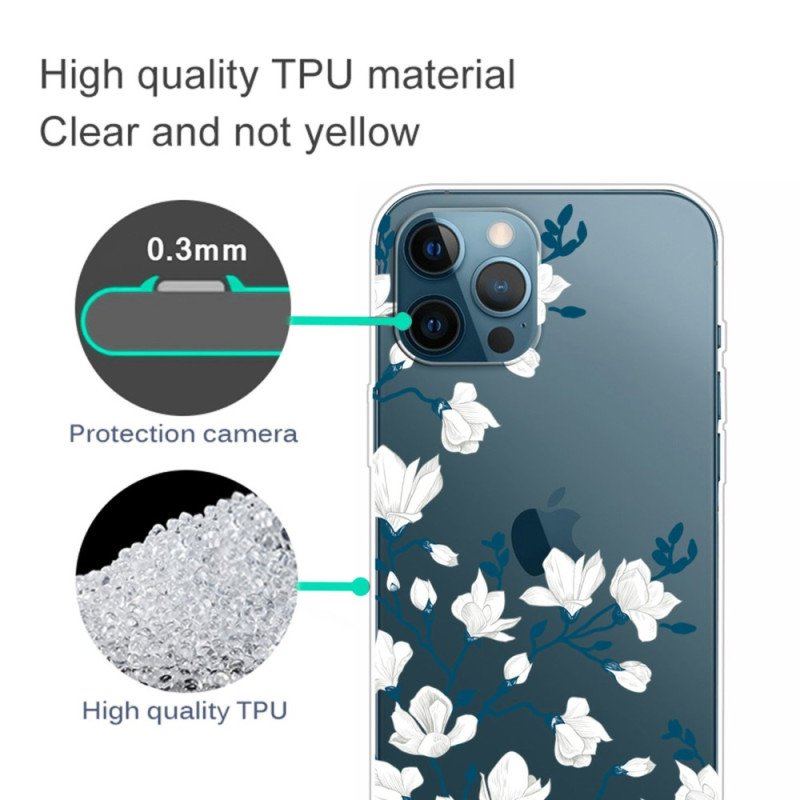 Detta Genomskinliga Fodral Dekorerat Med Vita Blommor Kommer Mycket Väl Att Säkra Din Iphone 14 Pro.
