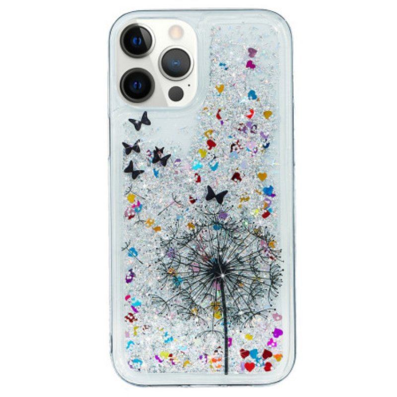 Din Iphone 15 Pro Max Kommer Att Bli Annorlunda Och Mycket Väl Skyddad Tack Vare Detta Glitterfodral Med Ett Maskrosmönster.