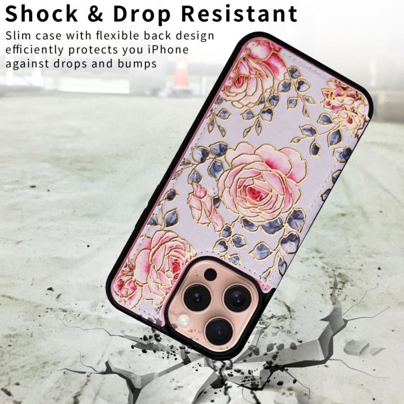 Skal iPhone 16 Pro Korthållare Och Blommigt Rfid-skydd