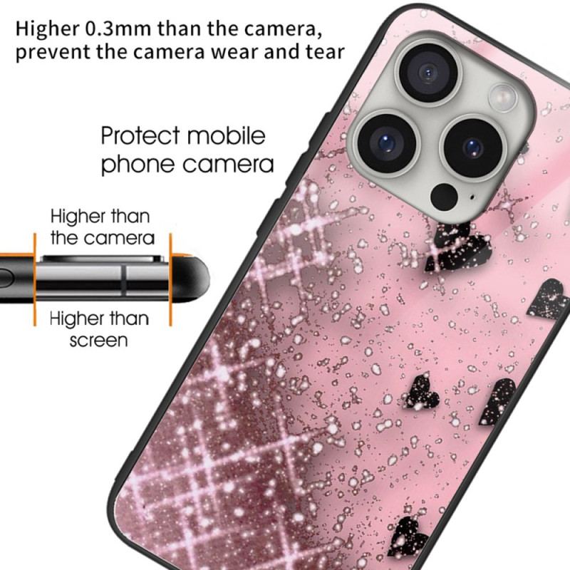 Skal iPhone 16 Pro Max Telefonfodral Hjärtan I Härdat Glas På Rosa Bakgrund
