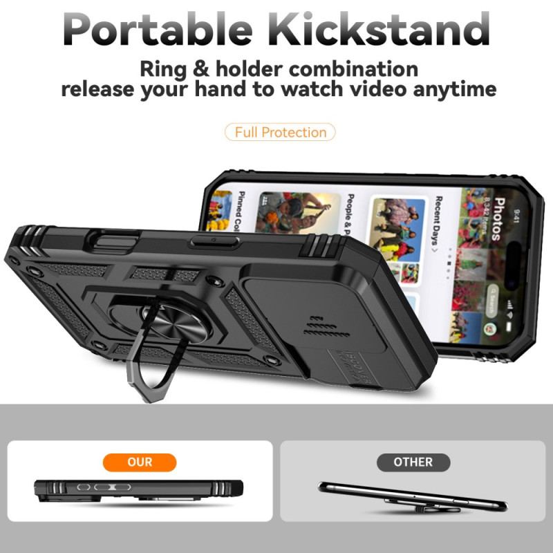 Upptäck Vårt Iphone 16 Pro Max-Fodral, Utrustat Med En Roterande Ringhållare Och Ett Skjutbart Kameraskydd.