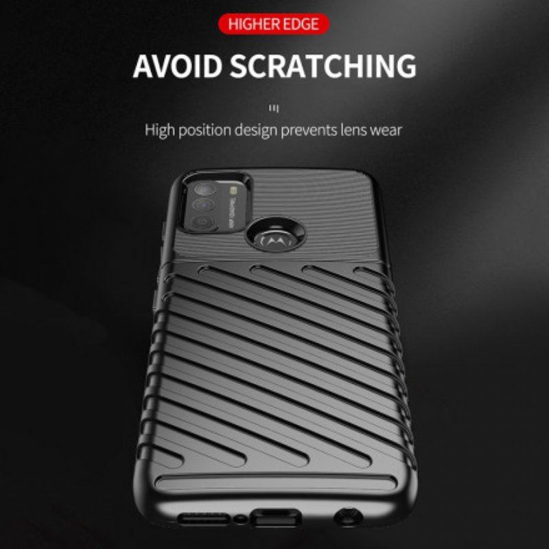 Din Moto G50 Är Perfekt Skyddad Med Detta Thunder Series Twill Texture Silikonfodral.