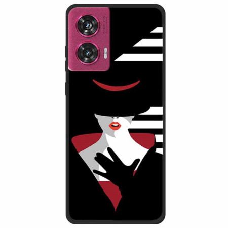 Kolla In Vårt Snygga Motorola Edge 50 Fusion 5G-Fodral, Med En Utsökt Dam I Svart Hattmönster.