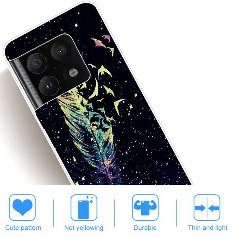 Förstora Din Oneplus 10 Pro 5G Med Detta Flexibla Silikonfodral Dekorerat Med En Fjäder.