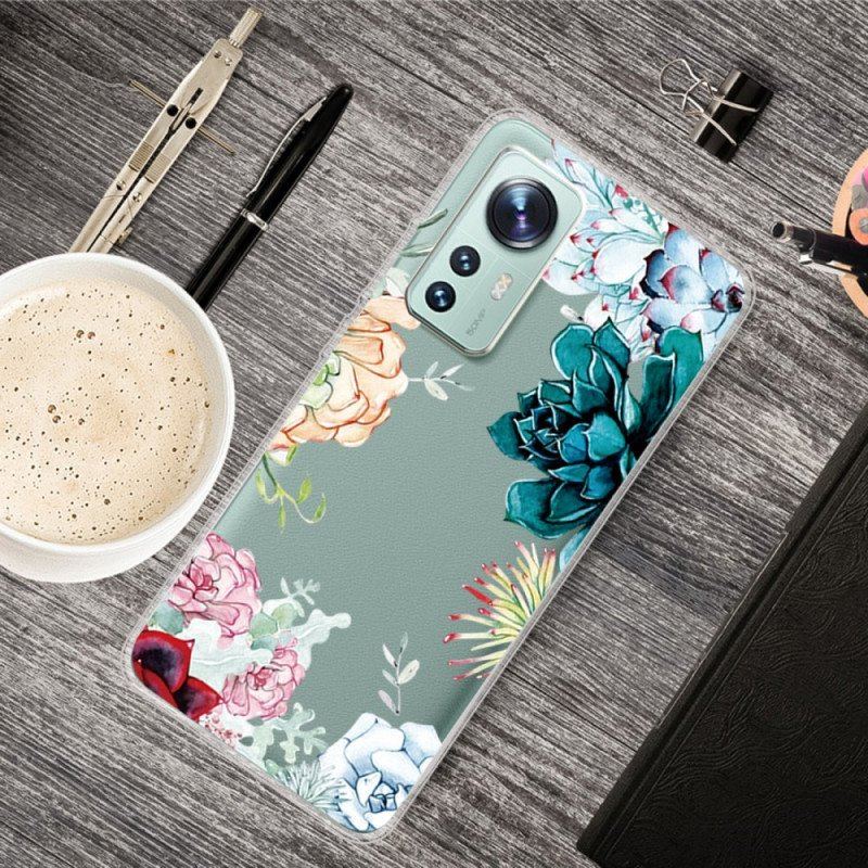 Ge En Personlig Touch Till Din Xiaomi 12 / 12X Genom Att Skydda Den Med Detta Genomskinliga Fodral Dekorerat Med Dessa Magnifika Akvarellblommor.