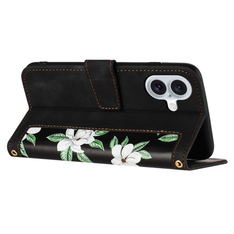 Skyddsfodral iPhone 16 Blommönsterplånbok Med Rem