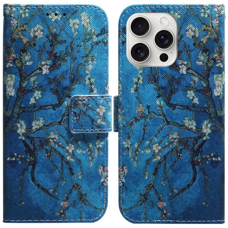 Kolla In Vårt Iphone 16 Pro Max Plånboksfodral Med Ett Vackert Aprikosblommamönster.